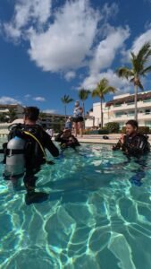 ¿No tienes certificación? No te preocupes, por $500 pesos mas, te llevamos a bucear por primera vez, en dos buceos desde embarcación, con 2 tanques de aire y todos los servicios restantes incluidos en el Fun Dive.