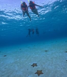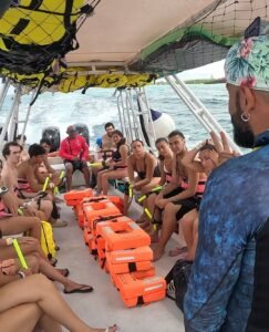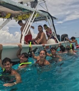 En nuestras embarcaciones disfrutarás del icónico mar caribe de Cozumel, un tour lleno de snorkel, peces y estrellas de mar, con alimentos tipo snack y bebidas para refrescar.