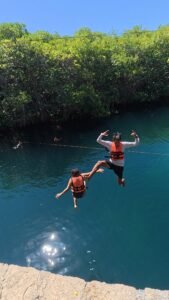 Aventúrate con nosotros en un recorrido en bicicleta por la selva de Tulum. Visita 3 cenotes increíbles, donde volarás en tirolesa, nadarás en aguas cristalinas y descubrirás cenotes abiertos y en caverna. Guiado por expertos, pedaleas entre la selva, viviendo un día de emoción, diversión y conexión con la naturaleza. Una experiencia perfecta para toda la familia. ¡Reserva tu aventura hoy!